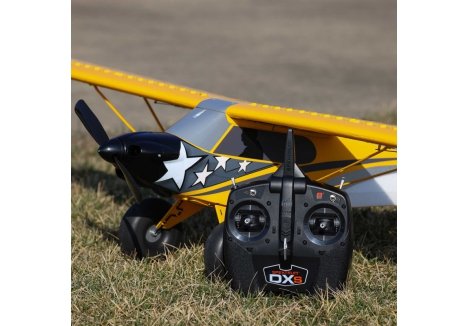 And the fun doesn't stop after you learn how to fly! In the Experienced Mode, the Carbon Cub S 2 is capable of performing aerobatic maneuvers including loops, rolls, inverted (upside down) flight, and more. You can even use the same DXS transmitter that's included with the RTF Basic version, along with the same battery and charger you use for the Carbon Cub, to fly a variety of BNF Basic version "Next Step" aircraft including the E-flite® T-28 Trojan 1.1m, the Valiant 1.3m and others!