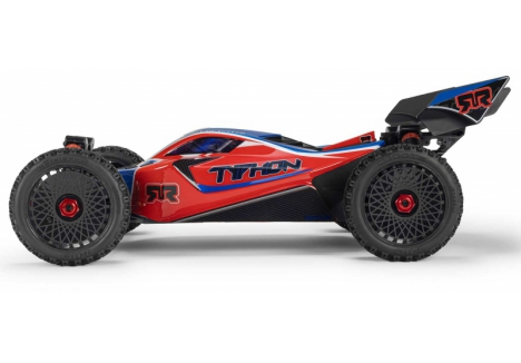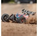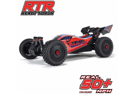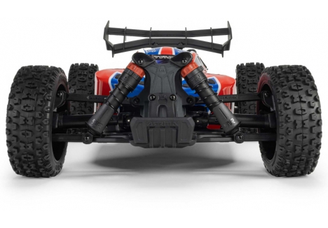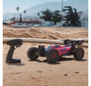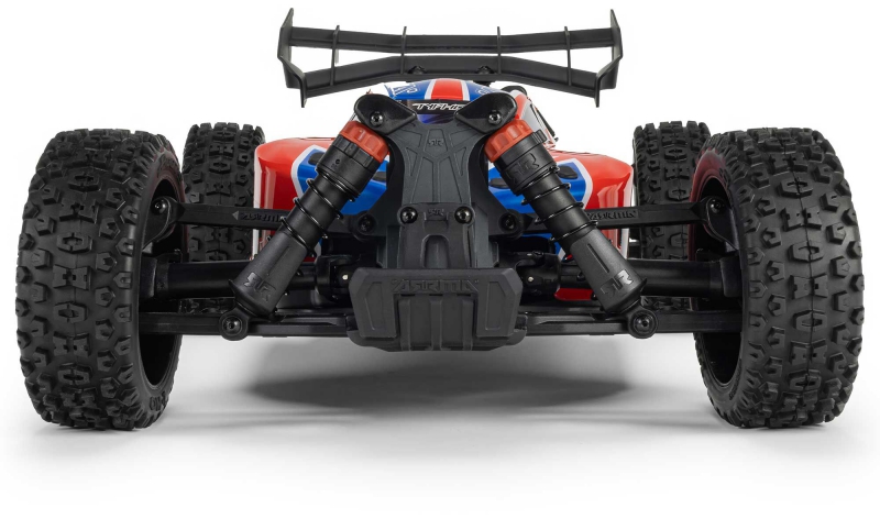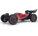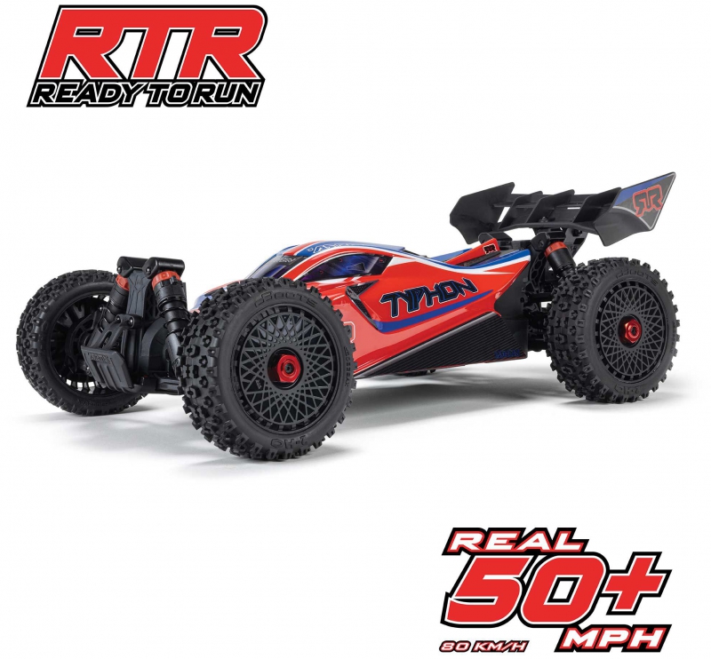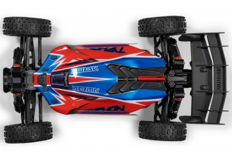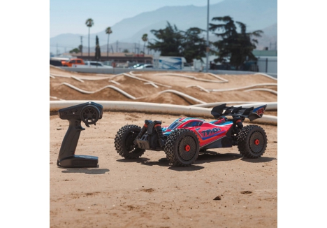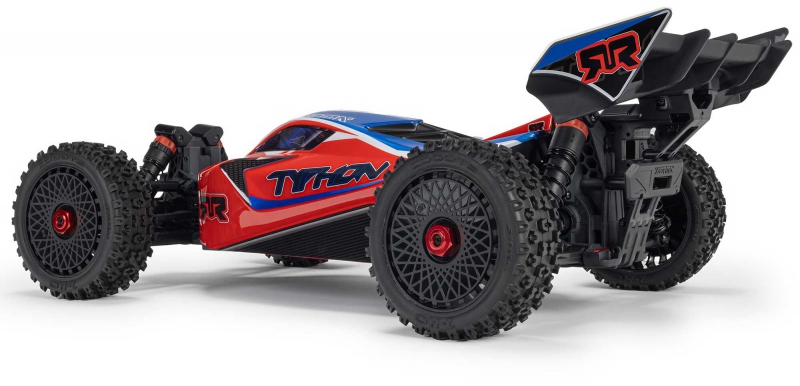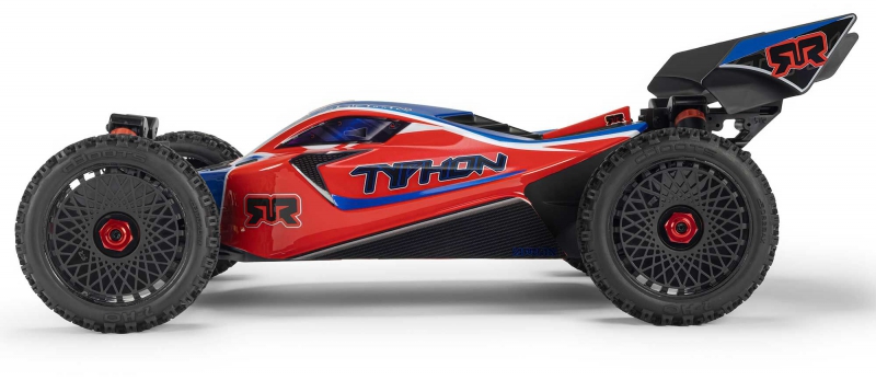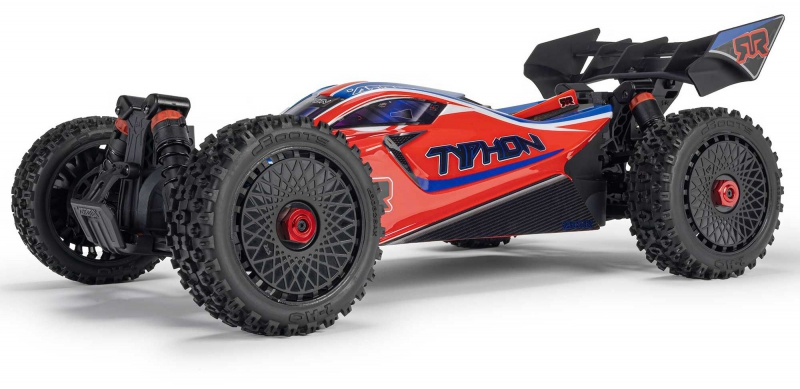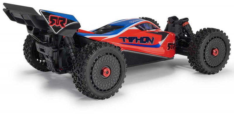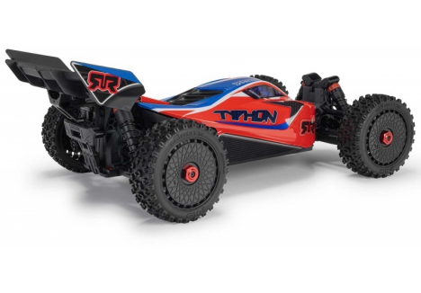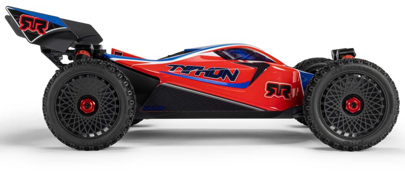 The ARRMA C-ARA4306V4T3 TYPHON 223S BLX in red is a 1/8 scale brushless buggy engineered for aggressive off-road bashing, precision control, and scalable speed. Designed to transition seamlessly from 2S to 3S power, the ARRMA C-ARA4306V4T3 brushless buggy delivers up to 50+ mph performance without requiring upgrades or modifications. Its low center of gravity, high-downforce wing, and narrow wheels combine with a composite chassis and metal gear drivetrain to deliver race-grade handling across dirt tracks, gravel paths, and skate parks. The ARRMA C-ARA4306V4T3 1/8 scale RC car features a clipless body system for quick access and clean styling, while the integrated Smart electronics and waterproof components ensure reliability in all conditions. Whether you're launching off ramps or carving through corners, the TYPHON 223S BLX is built to perform.