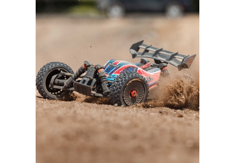 The ARRMA C-ARA4306V4T3 brushless buggy in red is a complete package for drivers ready to explore brushless power, scale realism, and terrain versatility. With its 3100Kv motor, DSC control, and clipless body system, this 1/8 scale platform is engineered for both progression and performance. Reinforced with metal gear differentials, oil-filled shocks, and a composite chassis, the TYPHON 223S BLX is built to bash hard and drive fast. Buy ARRMA C-ARA4306V4T3 buggy with composite chassis and 50+ mph speed potential and take your RC experience to the next level.