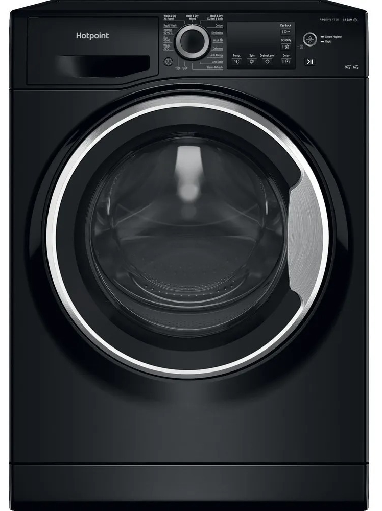 - Product Type: Hotpoint NDB9635BSUK washer dryer black, Hotpoint NDB9635BSUK 9kg wash 6kg dry appliance, Hotpoint NDB9635BSUK freestanding washer dryer, Hotpoint NDB9635BSUK with Anti-Stain and Steam Hygiene, Hotpoint washer dryer with Inverter Motor and Stop&Add
