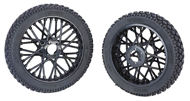- Product Type: Method RC MTD1027 front tyre/rim for Losi Promoto-MX, Method Geoform pre-mounted front tire for Promoto-MX RC motorcycle, Method RC MTD1027 black wheel with closed-cell foam insert, Method RC Geoform tread tire for soft to intermediate terrain MTD1027, Method RC front wheel with enlarged bonding surface for Promoto-MX