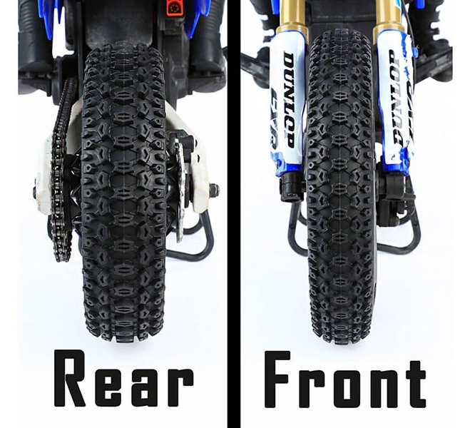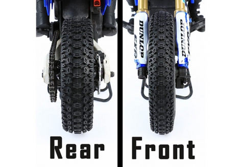 - Tire Width: Approx. 35–40 mm – proportional to 1/4 scale motocross tyres