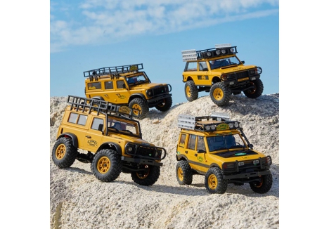 The FMS FMS12481RTRYL Range Rover Camel Trophy RC crawler 1/24 is a fully licensed tribute to one of the most iconic off-road events in history. Built on the advanced FCX24M chassis and officially approved by Jaguar Land Rover, this RTR model captures the rugged spirit of the Camel Trophy with a detailed ABS hard body, metal C-channel rails, and a functional roof rack. Whether you're navigating rocky trails or building a scale adventure fleet, the FMS FCX24M Range Rover Trophy Edition RTR RC car FMS12481RTRYL delivers realistic crawling performance in a compact 1/24 scale format.