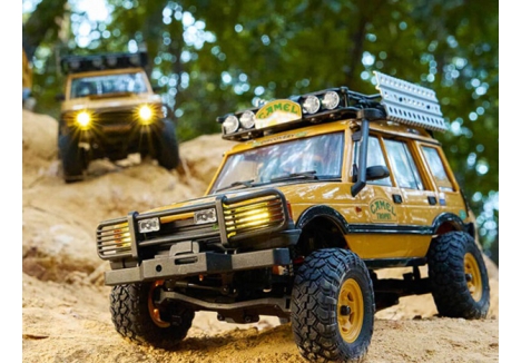 The FMS FMS12483RTRYL Land Rover Discovery Camel Trophy RC crawler is a 1/24 scale tribute to one of the most legendary off-road events in history. Built on the advanced FCX24M chassis and officially licensed by Jaguar Land Rover, this RTR model captures the rugged spirit of the Camel Trophy with a fully detailed ABS hard body, metal trapezoidal beams, and a factory-installed roof rack. Whether you're navigating technical terrain or building a scale adventure fleet, the FMS FCX24M Discovery Trophy Edition RTR RC car FMS12483RTRYL delivers realistic crawling performance and visual authenticity in a compact format.
