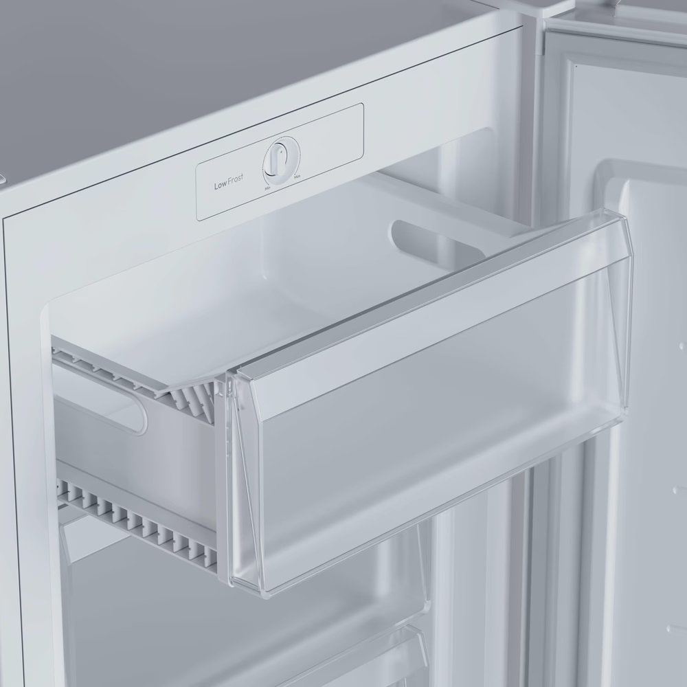 - Low frost technology – reduces ice formation for less frequent defrosting