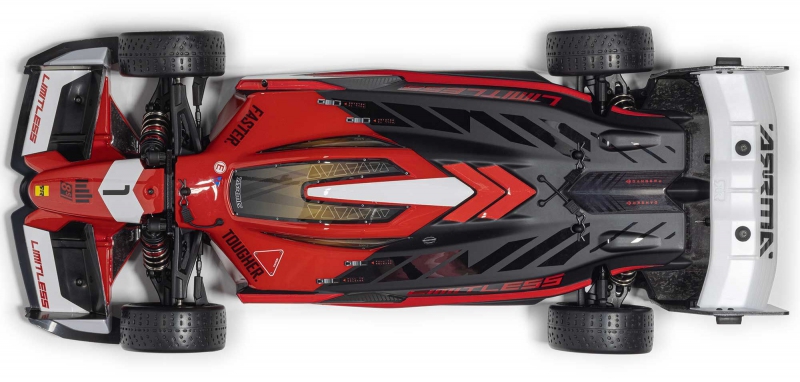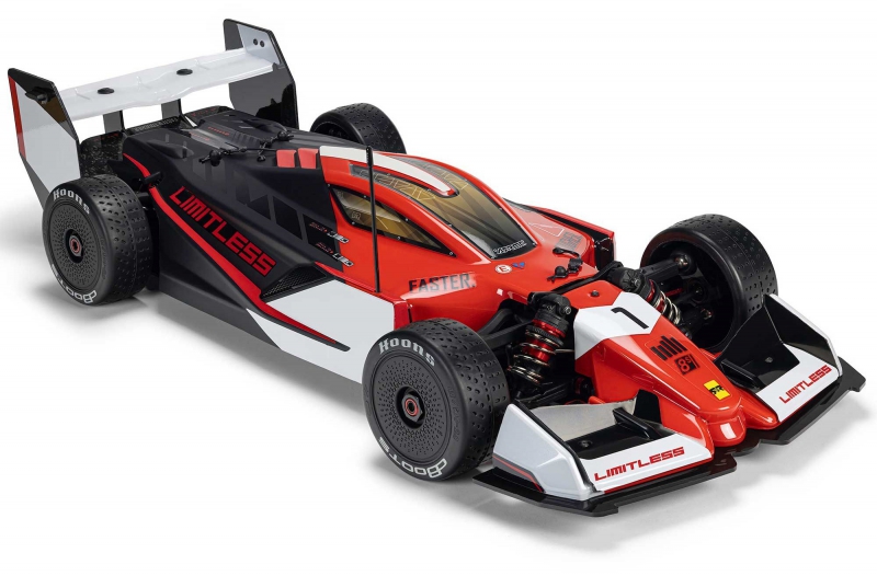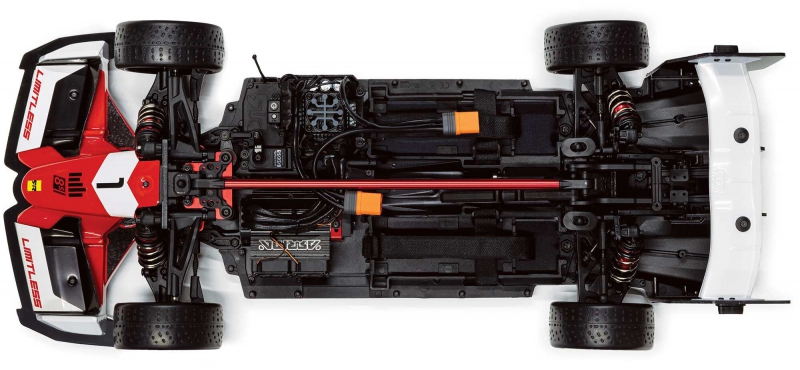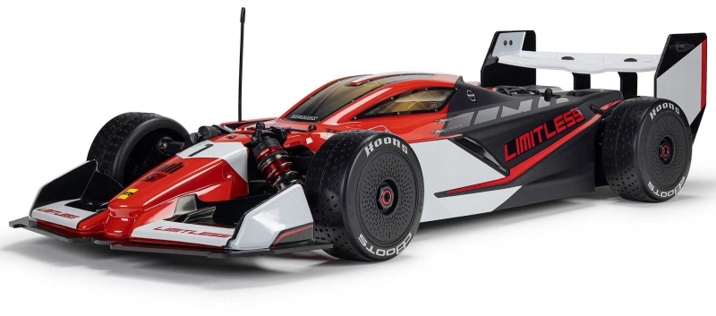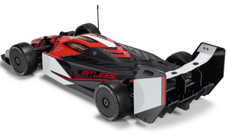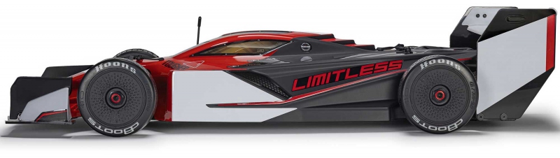 This ready-to-run version of the LIMITLESS includes a low-drag body that's factory-finished in a choice of colors. Wing trim lines can be used to reduce downforce. The full-width front splitter improves traction and handling, and a large rear diffuser reduces turbulence and drag.
