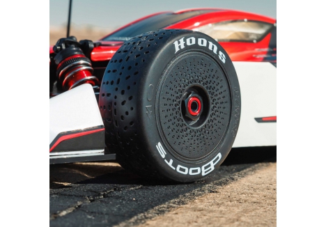 Big bore oil-filled shocks on black-anodized front and rear shock towers keep the dBoots Hoons all-road tires firmly planted for maximum traction. The tires are mounted on Speed wheels with extra-durable hubs.