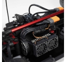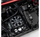 The 3mm anodized aluminum chassis is reinforced with a center brace for the durability needed to handle the stress of 120+ mph speeds. Optimized for 8S power, the 4X4 transmission features EXB differentials with all-metal diff outdrives and gearbox internals.