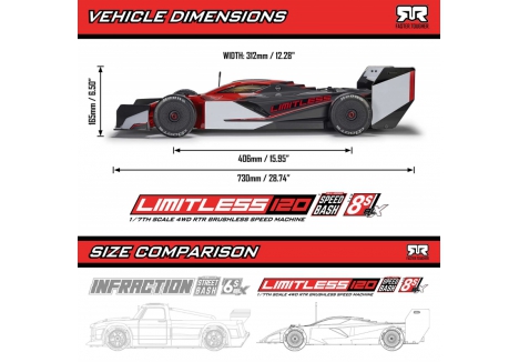 Your ultimate speed machine experience starts now. Drop in your 6S or 8S LiPo, point it down the longest stretch of pavement you can find, and prepare to redefine what fast actually means. The ARRMA LIMITLESS 120 RTR doesn’t just go fast - it goes ARRMA fast.