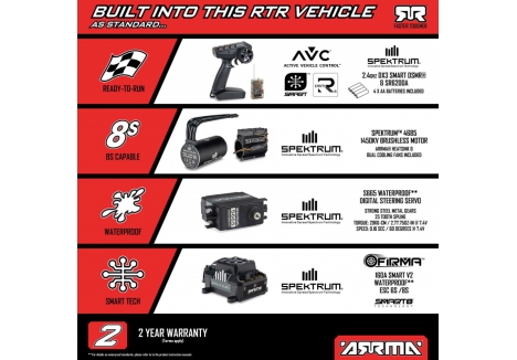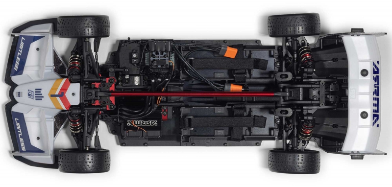 Straight out of the box, this ready-to-run production spec RC car comes locked and loaded with everything you need to dominate asphalt, embarrass supercars, and leave tire marks on your memory. Just drop in your choice of 6S or 8S hardcase LiPo and add a charger, and you’re holding the keys to the fastest production RC ever built. Now you’re ready to unleash peak ARRMA speed potential.