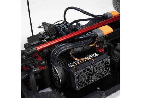 The electronics package doesn’t mess around either. We’re talking factory-installed SpektrumT power that’s ready to handle whatever voltage you throw at it. The IC5 connector-equipped FirmaT 160A Smart V2 ESC teams up with a Firma 1450Kv brushless motor complete with heatsink and dual cooling fans. The waterproof Spektrum S665 metal gear steering servo cranks out 277.75 oz-in of torque at 7.4V, and like the motor and ESC, the LIMITLESS 120 is completely waterproof because fast shouldn’t mean fragile.
