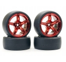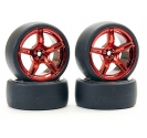 This pre-mounted set puts 1/10 drift-ready performance in your hands. Each of the four wheel-tyre combos features lightweight metallic red 5-spoke alloy wheels and high-grip drift tyres—ideal for aggressive track action.