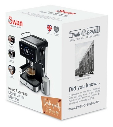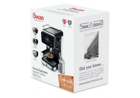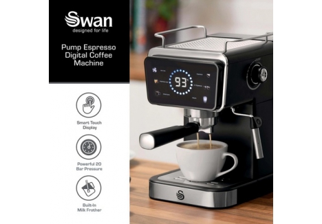 • Product Type: Swan SK22113BLK espresso coffee machine, barista style coffee maker, digital espresso machine, Swan espresso machine with 20 bar pressure, Swan coffee maker with touch display.