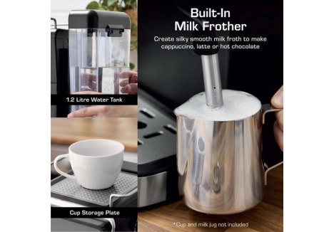 • Steam Wand: Variable steam milk frother for customised milk heating and frothing