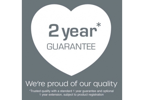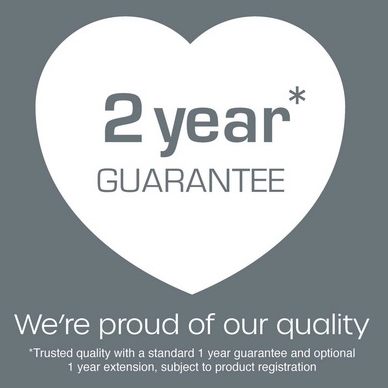 • Guarantee: Two-year coverage comprising one year standard plus one year extension upon product registration online