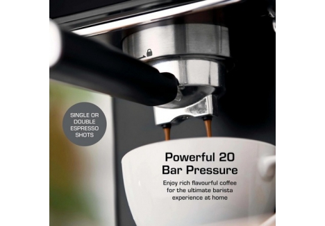 • 20-bar pressure pump – delivers higher extraction pressure for thicker crema and richer flavour