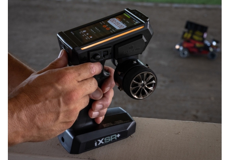 The iXSR+ transmitter features contactless hall-effect sensors that offer advanced precision, low maintenance and ultra-smooth feel that increases the accuracy and precision of the steering and throttle motion. Its ergonomics features left and right-hand compatibility, among other options to tailor the transmitter to how you want to drive.