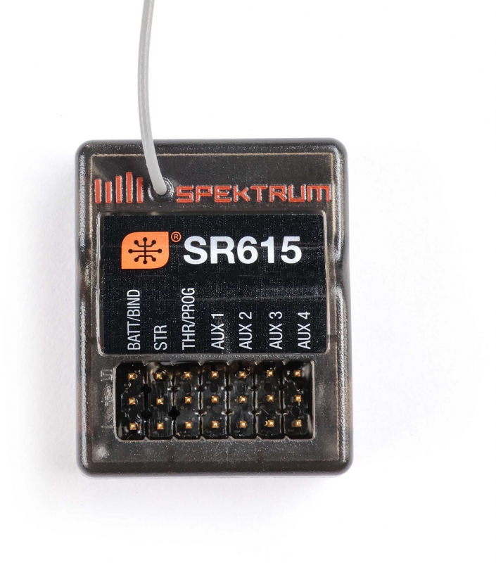 The SR615 also features a new, modern case design that is small, streamlined, and ready for nearly any RC application. Plus, while binding, you have the choice of SmartSafe™ and preset 'Gas' failsafe options.