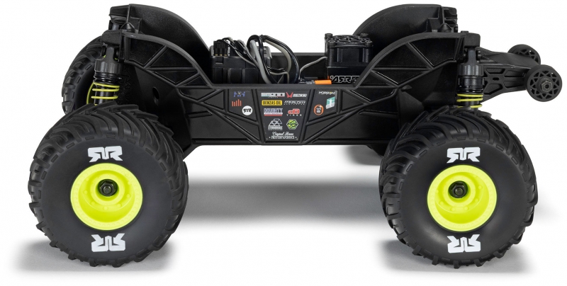 The GORGON GROM 4X4 RTR Monster Truck body snaps onto the chassis easily, quickly, and securely, and comes off with a simple press-and-release. With no tiny clips to force into place, it's a body attachment system that's perfect even for young bashers.