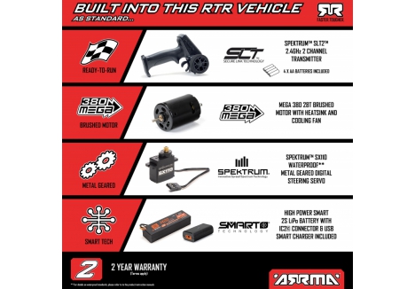 • Spektrum SLT 2-in-1 25A waterproof Brushed ESC and receiver