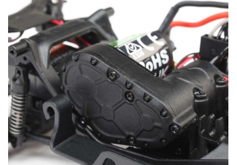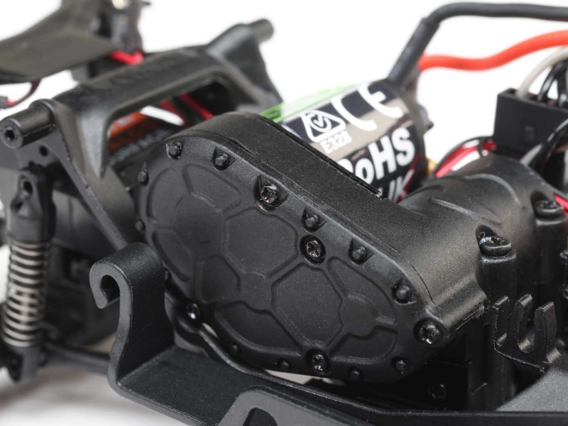 Performance on the rocks gets another boost from the climbing stability of the SCX30 platform’s forward weight bias. And it has plenty more to offer, from damped shocks, full ball bearings, and a powerful Axial 88T motor to dependable Spektrum electronics that are mounted low in the chassis for the best center of gravity.