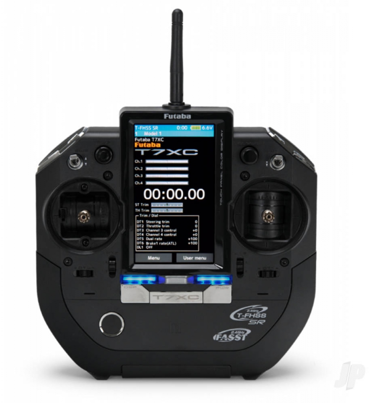 The T7XC was developed for car/boat modellers who want a premium stick style radio for land vehicles and water craft. The updated software is based on the well known T7PX with some new features and, to house it all, a stylish ergonomic case. The latter, as you'll doubtless have clocked, is made from high quality moulded plastic and finished in a stunning deep satin black with chrome accents and switches. The huge 4.3" colour touch screen has a 'transflective' surface for superb visibility indoors and out and responds quickly to the touch. Meanwhile a conventional jog dial is provided if you prefer to navigate that way.