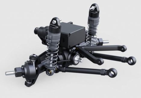 Front/rear axle steering modes with a 0.5kg digital steering servo.