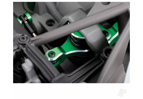 The Traxxas TRX77097-4-GRNX X-Maxx Ultimate 8S brushless monster truck features a heavily reinforced aluminium chassis that enhances structural integrity across all performance zones. This includes the suspension arms, steering bellcrank, and drivetrain supports. These upgrades are precision-machined to withstand high-impact landings, aggressive terrain, and sustained high-speed driving. The aluminium components reduce flex and improve responsiveness, allowing the truck to maintain stability and control even under extreme conditions. This level of durability is essential for serious off-road enthusiasts who push their vehicles to the limit.