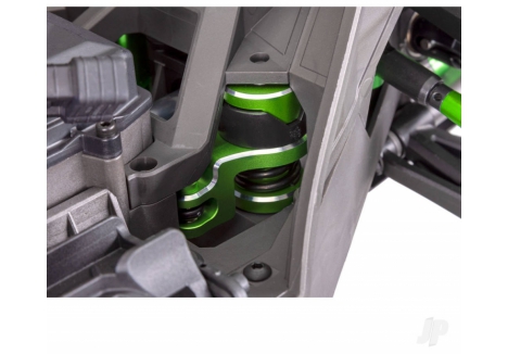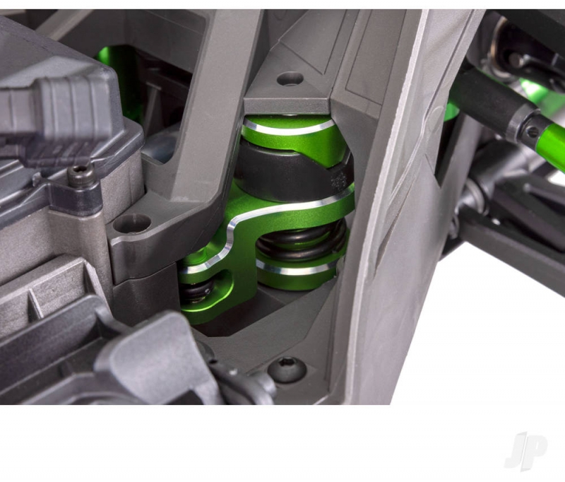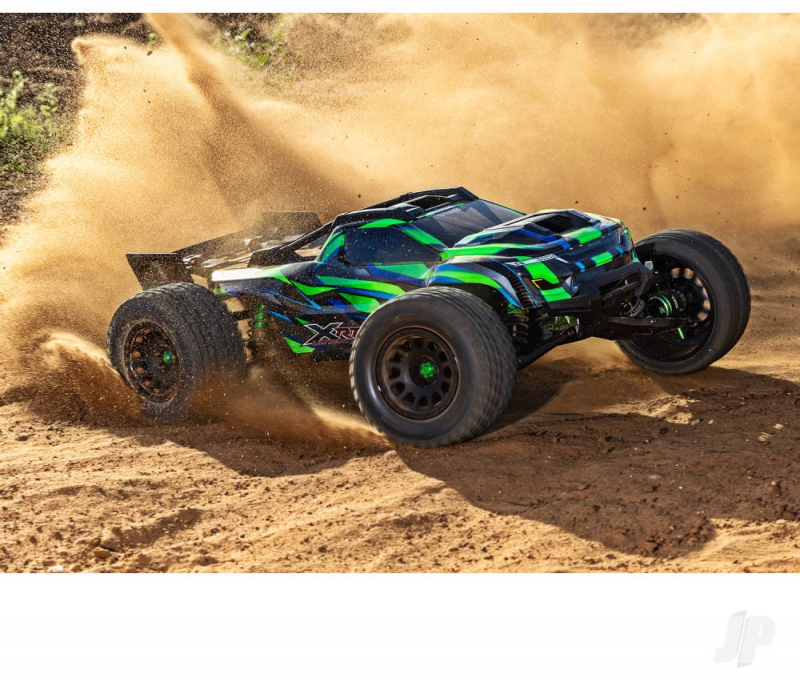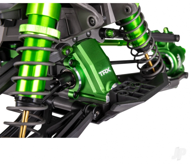 XRT receives substantial aluminium upgrades in all key areas of performance: suspension, chassis, drivetrain, and steering to usher in a new era of X-Truck strength and durability. XRT's aluminium upgrades improve high-speed stability and precision while creating the toughest truck ever to wear the Traxxas name.