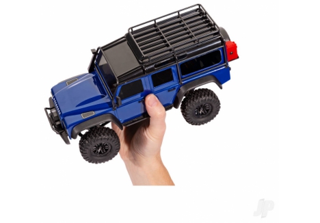 The Traxxas TRX97054-1-BLK 1:18 Land Rover Defender crawler is designed for both indoor and outdoor environments. Its compact size and tight turning radius make it suitable for navigating household obstacles like books and furniture. Outdoors, the steel frame, suspension system, and waterproof components allow it to tackle rocks, dirt, and uneven terrain with ease. The full-size TQ transmitter ensures reliable long-range control, while the electronic hill-hold braking supports controlled descents on slopes.