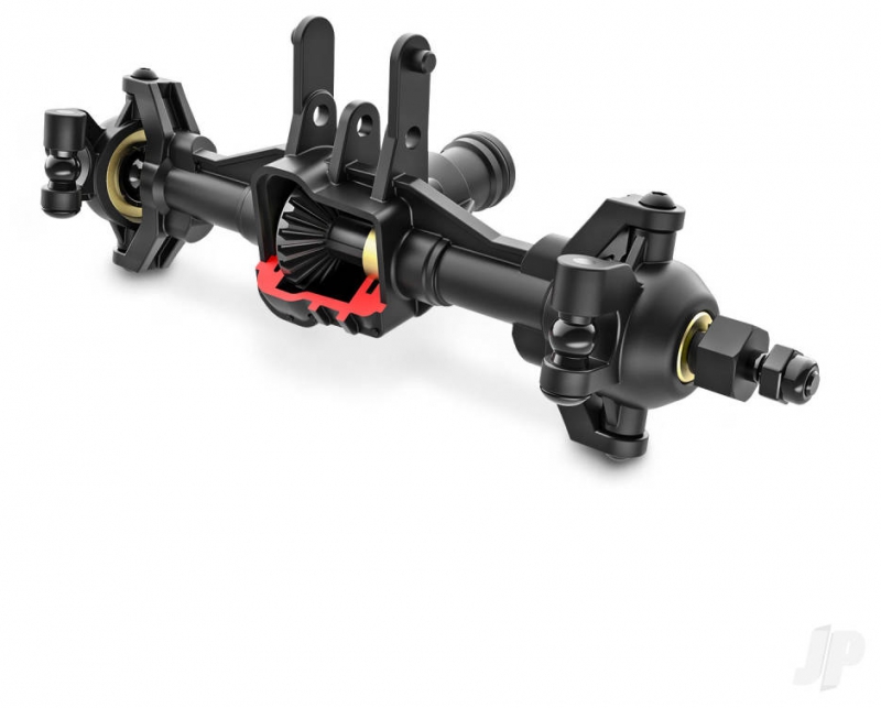 TRX-4M rides on a sophisticated four-link suspension with heavy-duty linkages. Spool-equipped solid axles supply non-stop climbing power to all four wheels with excellent articulation to climb over the toughest obstacles. Heavy-duty telescoping centre driveshafts send the motor s torque to the axles with a smooth-running CV design.
