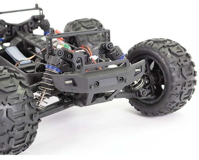 The FTX Tracer FTX5596R with wheelie bar and LED bumper lights is designed for fun and control. The wheelie bar helps manage rear traction during hard launches, while the LED bumper lights enhance visibility and style. Fully proportional throttle and steering make the truck responsive and easy to handle, even for beginners. Splashproof electronics and a reinforced drivetrain ensure reliable performance across varied terrain.