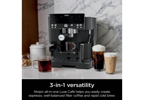 The Ninja ES601UKBK Luxe Café Premier espresso machine in black is a sophisticated 3-in-1 coffee system designed to elevate your home brewing experience. Whether you’re crafting a bold espresso, a refreshing cold brew, or a smooth filter coffee, this machine delivers barista-quality results with minimal effort. With its built-in grinder, scale, and Dual Froth System, the Ninja ES601UKBK Luxe Café Premier espresso machine combines precision and convenience in one sleek appliance. Its intuitive control panel and assisted tamper make it ideal for both beginners and seasoned coffee enthusiasts looking to perfect their technique.