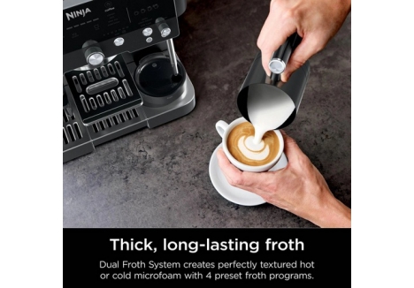 Absolutely. The Ninja Luxe Café ES601UKBK with Dual Froth System and assisted tamper is designed to replicate the texture and quality of professional milk frothing. The Dual Froth System steams and whisks milk simultaneously, producing silky froth for lattes, cappuccinos, and flat whites. With four froth presets—Steamed Milk, Thin Froth, Thick Froth, and Cold Froth—you can tailor the texture to your drink. The auto purge function cleans the steam wand internally after use, ensuring hygiene and readiness for your next brew. Combined with the assisted tamper, this system makes it easy to achieve barista-level results at home.