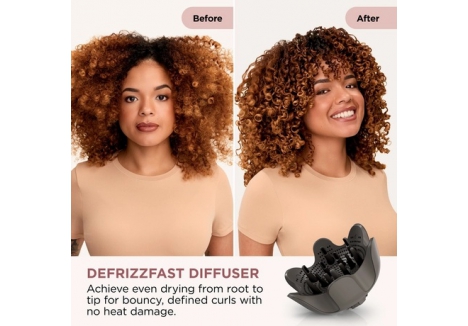 • Four styling attachments – Turbo Concentrator, QuickSmooth Brush, DefrizzFast Diffuser and FrizzFighter Finishing Tool