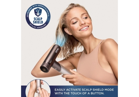 This hair dryer is designed to offer a balance of power, control and convenience. The high-velocity airflow helps reduce drying time, while the Scalp Shield Mode carefully manages heat to protect delicate hair and sensitive scalps. The lightweight design and compact handle make the dryer easy to manoeuvre and store.