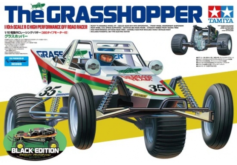 - Product Type: Tamiya 47522 The Grasshopper Black Edition 1/10 RC Buggy Kit, Tamiya The Grasshopper Black Edition 1/10 Off Road RC Assembly Kit, Tamiya The Grasshopper Black Edition 1/10 Electric Brushed Buggy, Tamiya The Grasshopper Black Edition coil spring suspension and sealed gearbox, Tamiya The Grasshopper Black Edition grooved front tyres and paddle pattern rear tyres