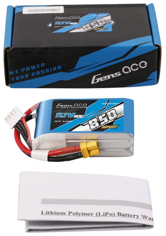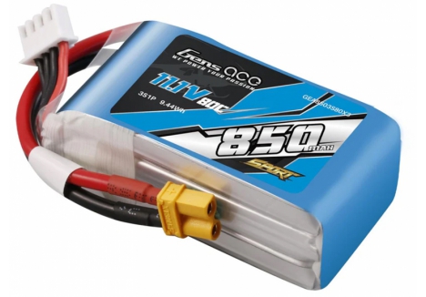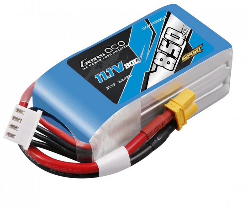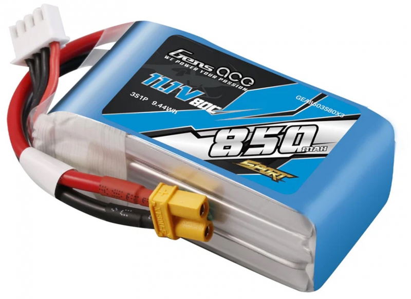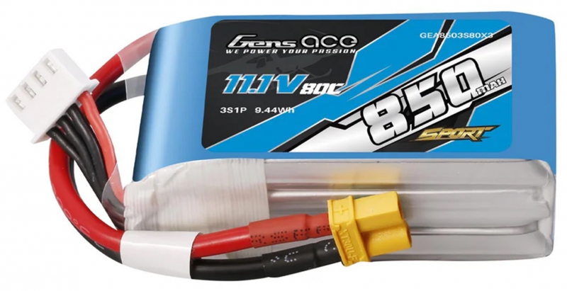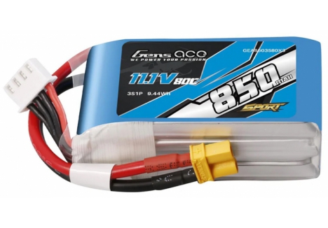 Gens ace 850mAh 11.1V 3S1P 80C Lipo Battery is designed for F5J and performance motorgliders, particularly small sizes. They are in true 80C discharge rate, and only weighted 73g. Gens ace 850mAh 3S lipo can provides your drone long enough flying time whilst adding only very little weight to your RC helis.