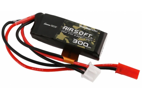 Gens ace 35C 300mAh 2S1P 7.4V Airsoft Gun Lipo Battery with JST-SYP Plug is designed specifically to power airsoft gun. Suitable for most AEG like M4;CM16 SCAR AR15 LE STOCK.
