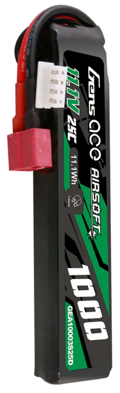 Gens ace 25C 1000mAh 3S1P 11.1V Airsoft Gun Lipo Battery with T Plug is designed specifically to power airsoft gun.