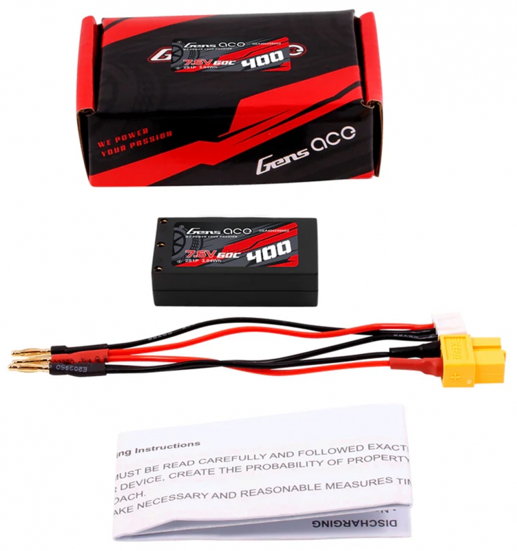 GENSACE Li-Po Car Hard Case 2S 7.6V 400mAh 60C with XT60 O-GC2S0400-60X6