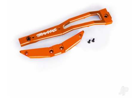 A TQi 2.4 GHz 2?channel radio system ships with a factory?installed Traxxas Link wireless module, unlocking on?board telemetry through the VXL?4s ESC. The Traxxas Link app provides micro?adjustments to transmitter behaviour and real?time speed, RPM, and battery voltage data across up to 30 Link?enabled models. The clipless body mount system uses a pivoting rear latch for quick one?hand installation and removal, eliminating body posts and clips and adding molded reinforcements for tear resistance. Energy?absorbing bumpers, lower skid plates, integrated nerf bars, and a wheelie bar with aluminium wheels round out practical protection.