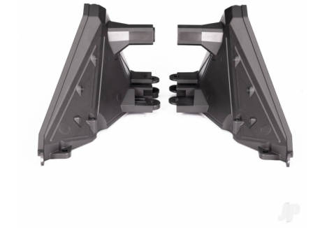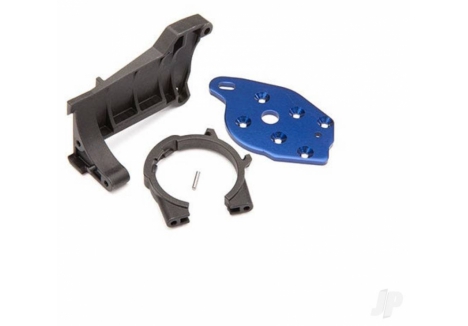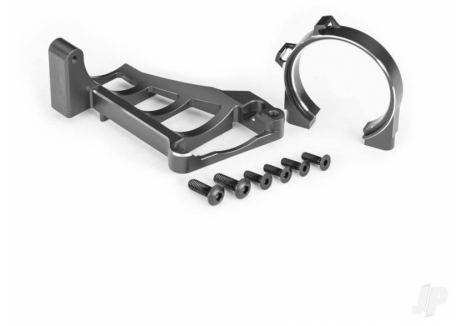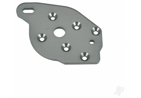 A modular composite chassis interlocks with front and rear bulkheads to absorb and distribute impact energy, shielding the sealed driveline from grit. 6061?T6 aluminium C?hubs, steering blocks, rear hub carriers, transmission cover, and an aluminium full?length motor cradle enforce alignment under repeated landings and hard launches. Aluminium suspension pin retainers resist wear at high?stress locations, while steel pivot balls and double?shear strength across critical points keep geometry true. The secure motor mounting system uses precise, fixed gear mesh adjustments and retains the motor independently of gear mesh, preserving performance through shock loads.