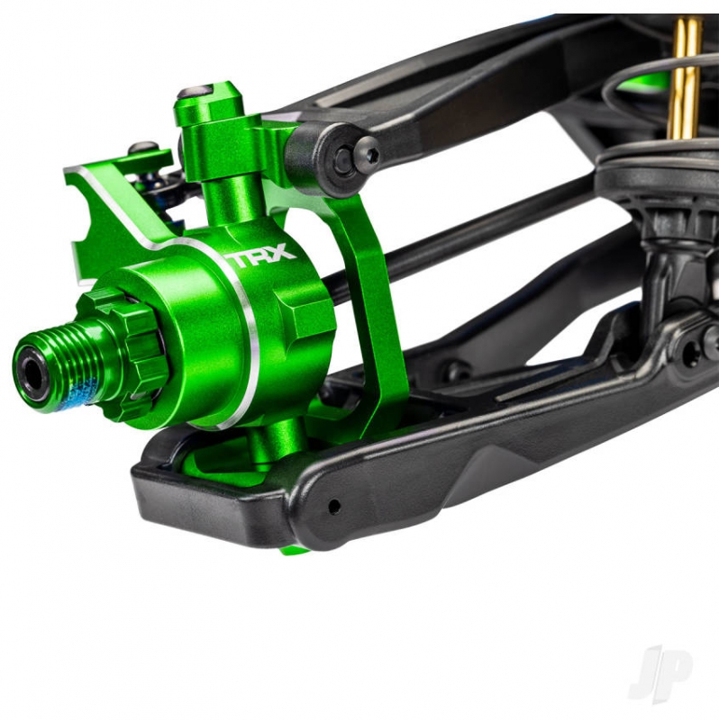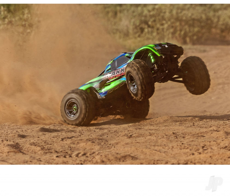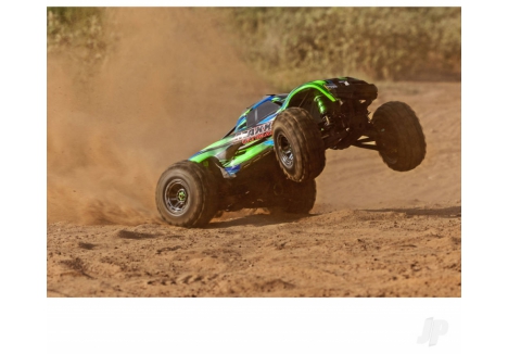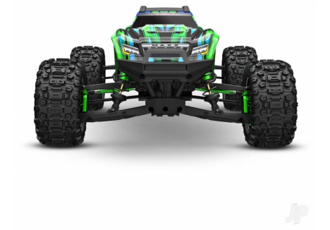 The Traxxas TRX89087-4-GRN Maxx Ultimate 1:10 4S 4WD monster truck in Green fuses X?Truck strength with elite upgrades to deliver a relentless off?road experience. Premium 6061?T6 aluminium components across the chassis, suspension, and driveline provide bombproof resilience, while steel CV driveshafts and Mod?1 steel gears channel torque with authority. A waterproof VXL?4s ESC partners with the long?format Velineon 540XL brushless motor for consistent power on mud, gravel, and damp grass, backed by Traxxas Stability Management for controllable speed. Huge 5.6 inch Sledgehammer tyres mounted to black chrome 2.8 inch wheels bite into loose terrain, and a clipless body system with molded reinforcements enables quick one?hand shell removal and robust protection. With real?time telemetry via the pre?installed wireless module in the TQi transmitter, the Green finish looks as fierce as the numbers it puts down.