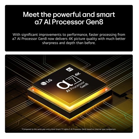 At the heart of the LG 50UA74006LB.AEK HDR10 Pro Smart TV lies the powerful Alpha 7 AI Processor Gen8. This advanced chip is designed to upscale lower-resolution content to near-4K quality, refining sharpness and depth in every frame. The processor intelligently analyses each scene to optimise resolution, brightness, and clarity, ensuring that even older content looks fresh and detailed. With faster processing speeds and improved performance, the Alpha 7 AI Processor Gen8 transforms everyday viewing into a cinematic experience.