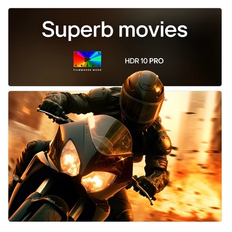 - 4K HDR10 Pro – Enhanced colour, contrast, and brightness for lifelike visuals