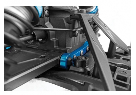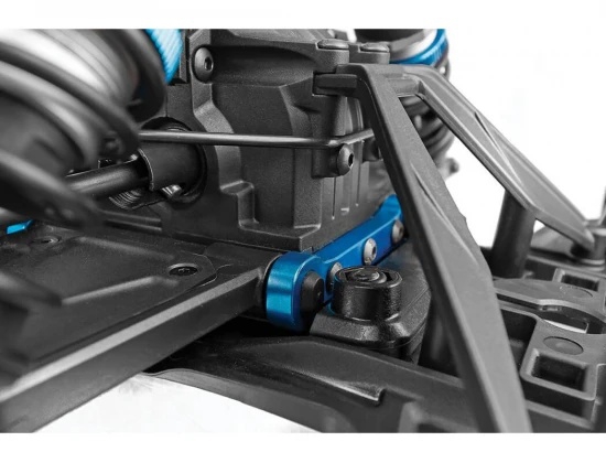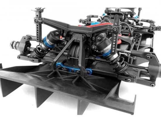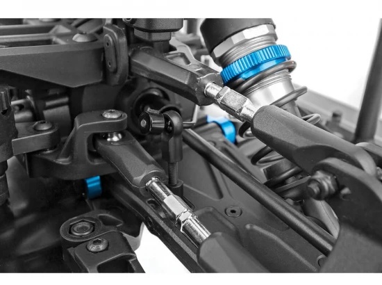Suspension tuning is critical for high-speed RC performance, and the Team Associated SR7 Hoonigan Roller dual battery trays platform integrates advanced features to meet this need. Upper suspension arms with adjustable camber and roll-centre allow drivers to fine-tune handling characteristics. Anti-roll bars at the front and rear reduce body roll, ensuring precise cornering even under aggressive driving. The inclusion of aluminium wheel hexes and nuts adds strength at the hub interface, while belted slick tyres maintain their shape at speed, delivering consistent grip. These features combine to create a chassis that is responsive, durable, and adaptable to different driving styles.