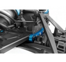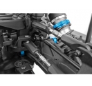 The SR7 chassis is designed to accommodate powerful electric setups. A two-piece adjustable motor mount allows for taller gearing, enabling drivers to fine-tune speed and acceleration. Dual battery trays with adjustable length and hook-and-loop strapping provide secure fitment for 2S or 3S LiPo batteries, ensuring extended run times and consistent power delivery. Combined with heavy-duty CVA joints and metal ball bearings, the drivetrain is engineered for efficiency and durability. The 4WD system ensures balanced traction across all four wheels, making the SR7 capable of handling demanding on-road conditions with confidence.