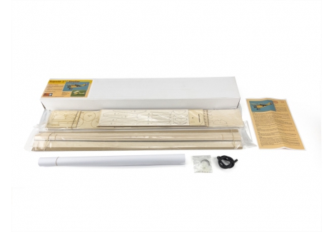 A full size multi-sheet plan is included and the laser cut parts set includes all the balsa and plywood parts required to build the basic airframe, such as fuselage sides with spar slots and wing position holes laser cut for accuracy, formers, bulkheads, cowl components, wing ribs, shaped spars, tip shapes, trailing edges, struts plus many smaller items including scale control horns, tail skid and wheel cores. Build instructions included.