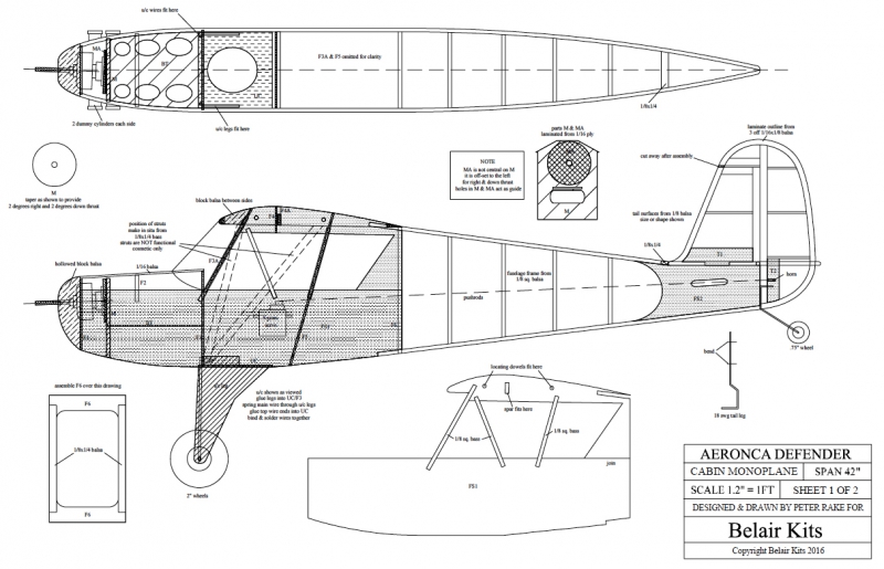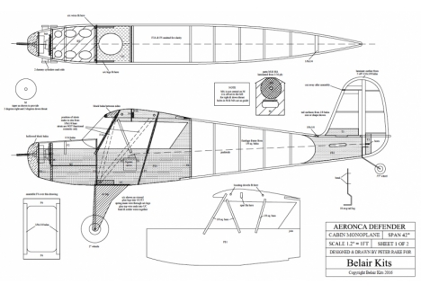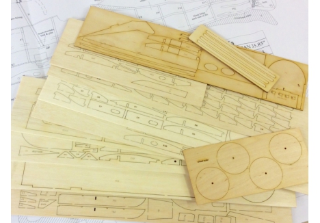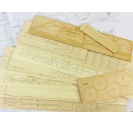 The Aeronca Defender is traditional all wood construction and features a multi sheet plan and accurate laser cut parts. Formers, fuselage sides, wing ribs, trailing edges, landing gear mounts, cowl parts plus many smaller parts are included.
